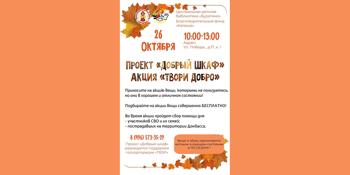 26 октября в библиотеке «Буратино» пройдет традиционная акция «Твори добро»