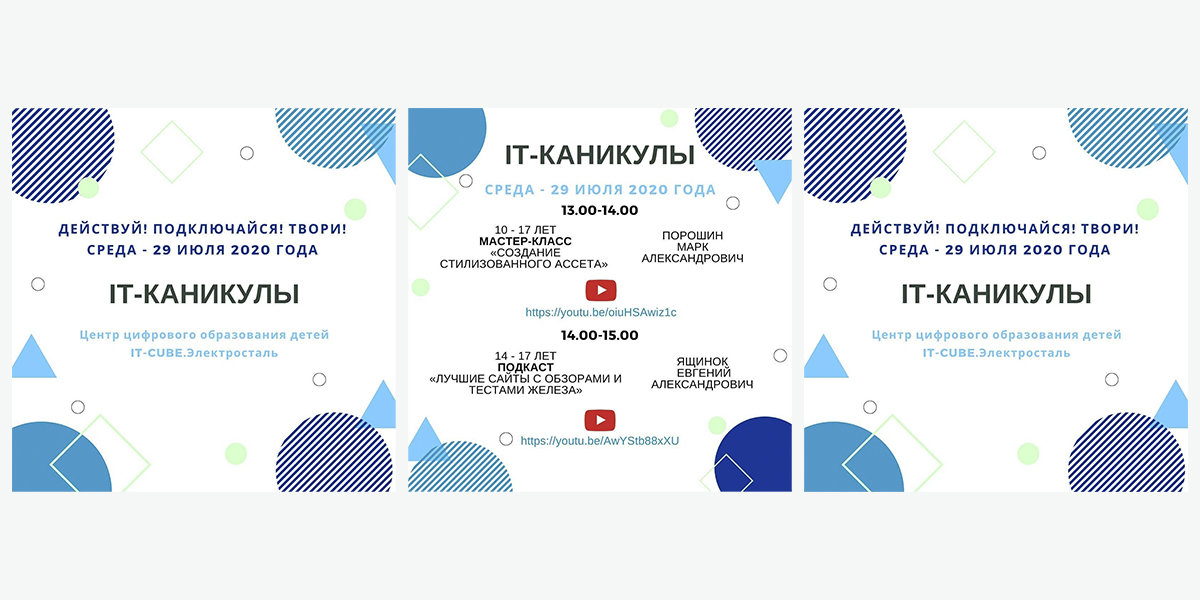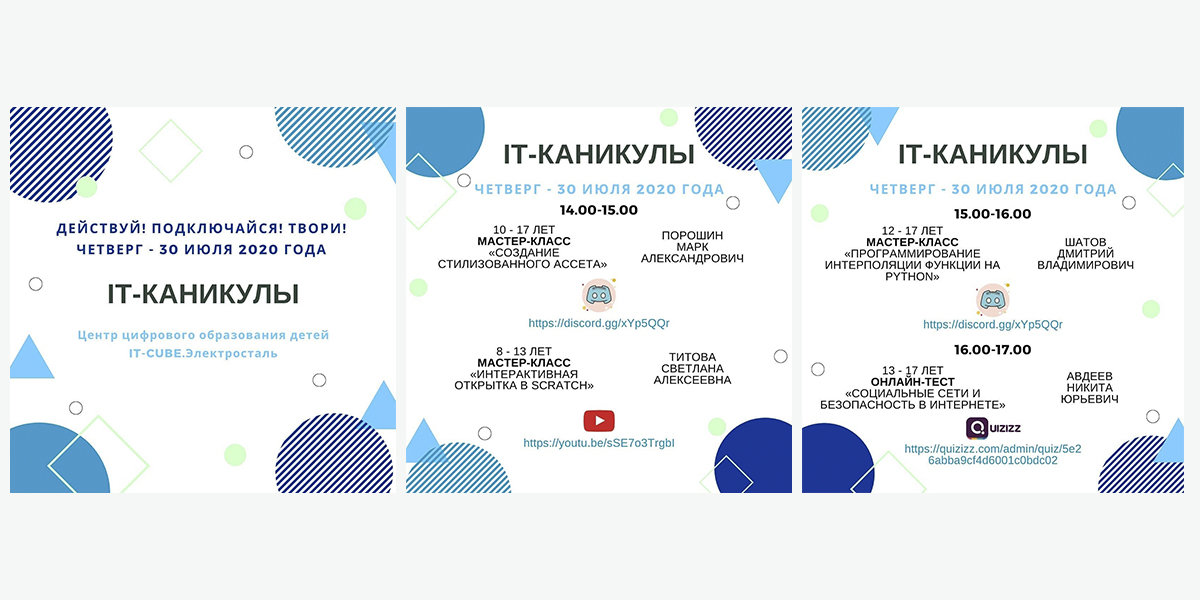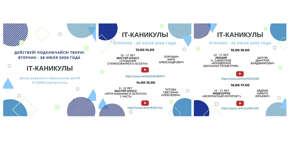 Афиша дистанционного лагеря IT-каникулы на 28, 29 и 30 июля 2020 года ⠀