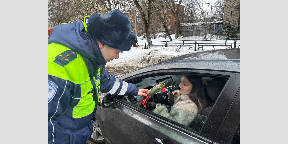 Сотрудники Госавтоинспекции УМВД России по г.о. Электросталь присоединились к акции «Цветы для автоледи»