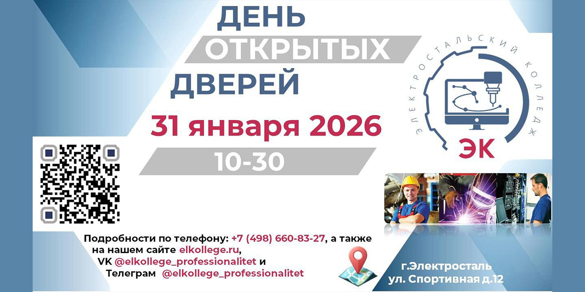 ГБПОУ МО «Электростальский колледж» приглашает будущих абитуриентов и их родителей на День открытых дверей, который пройдет 31 января 2026 года.