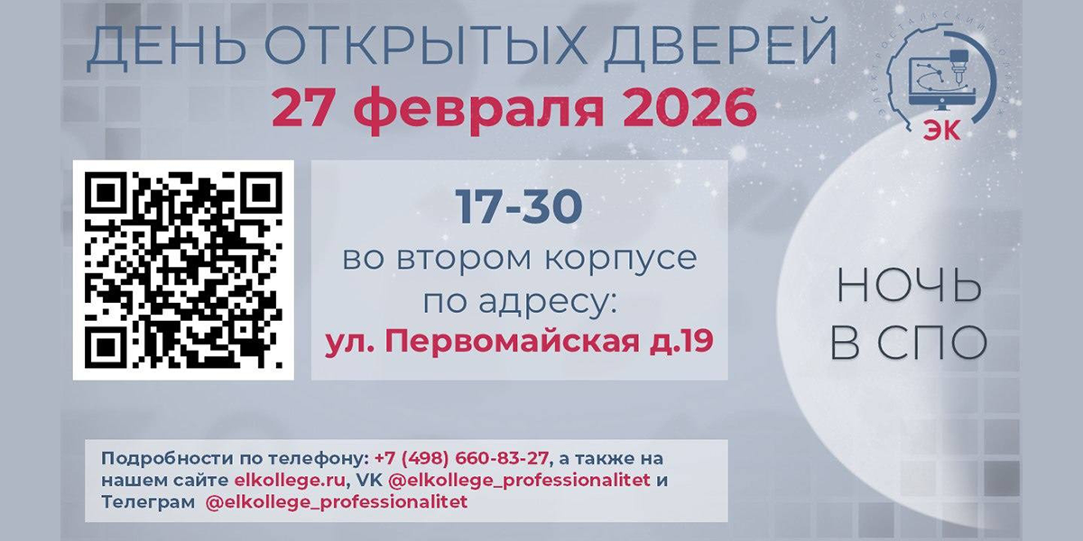 ГБПОУ МО «Электростальский колледж» приглашает будущих абитуриентов и их родителей на День открытых дверей, который пройдет 27 февраля 2026 года.