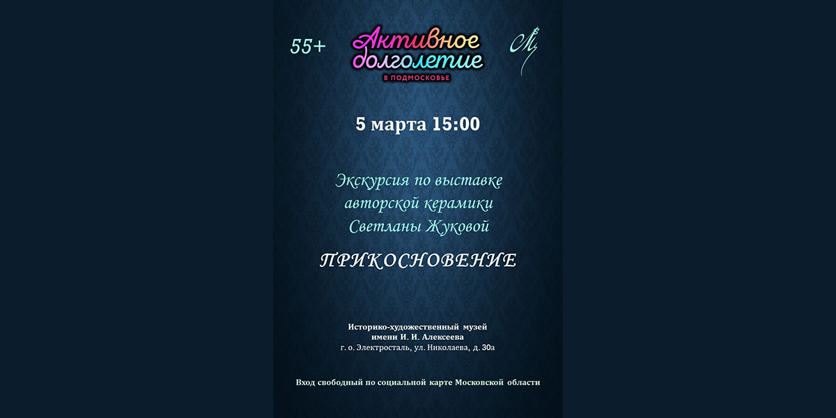 В рамках программы «Активное долголетие» Историко-художественный музей им. И. И. Алексеева приглашает на экскурсию по выставке авторской керамики Светланы Жуковой «ПРИКОСНОВЕНИЕ».
