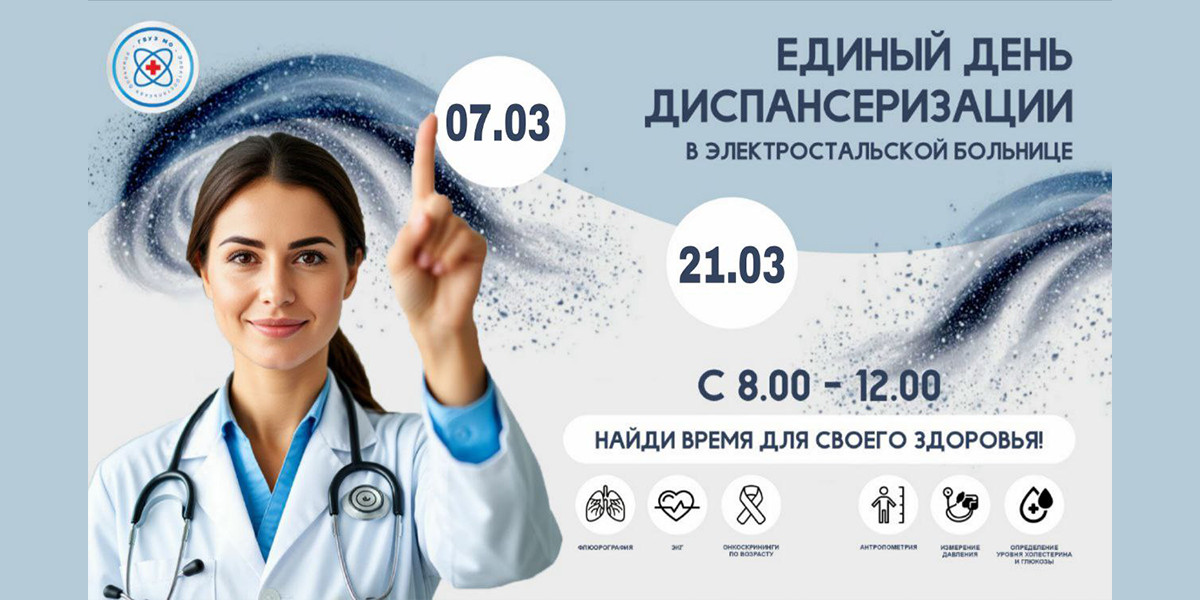 Единый день диспансеризации пройдёт 7 марта с 08:00 до 12:00 в поликлинике по адресу: ул. Пушкина, 3. В этот день жители города смогут пройти комплексное медицинское обследование и оценить своё здоровье.