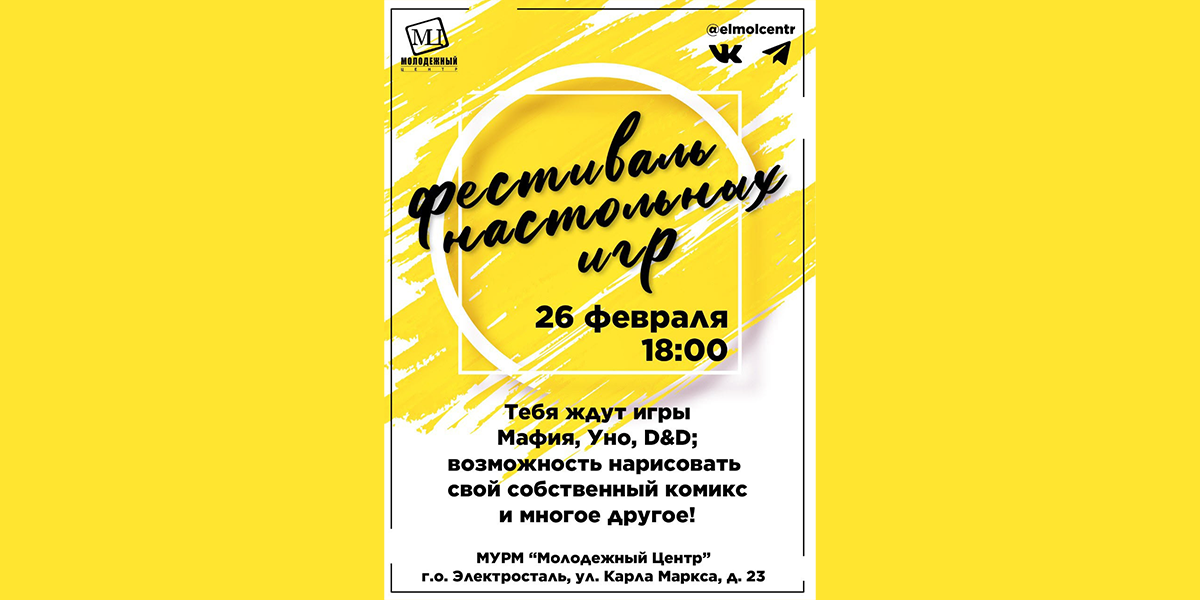 Фестиваль настольных игр вновь возвращается в Молодёжный Центр 26 февраля в 18:00!