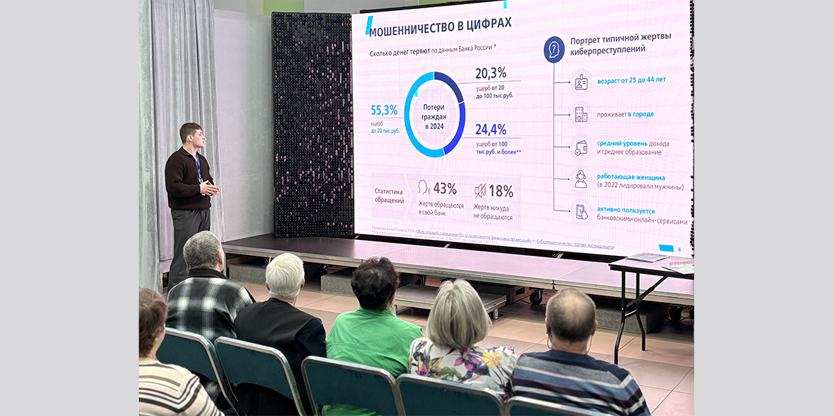 Ведущий встречи подробно разобрал самые распространённые схемы обмана, которые используют злоумышленники. Гости узнали, как выглядят типичные уловки лжебанкиров, по каким признакам можно распознать фальшивый сайт и почему ни в коем случае нельзя переходить по подозрительным ссылкам, приходящим в смс-сообщениях или мессенджерах. Отдельное внимание спикер уделил защите личных данных: участникам объяснили, какую информацию никогда нельзя называть по телефону незнакомцам.