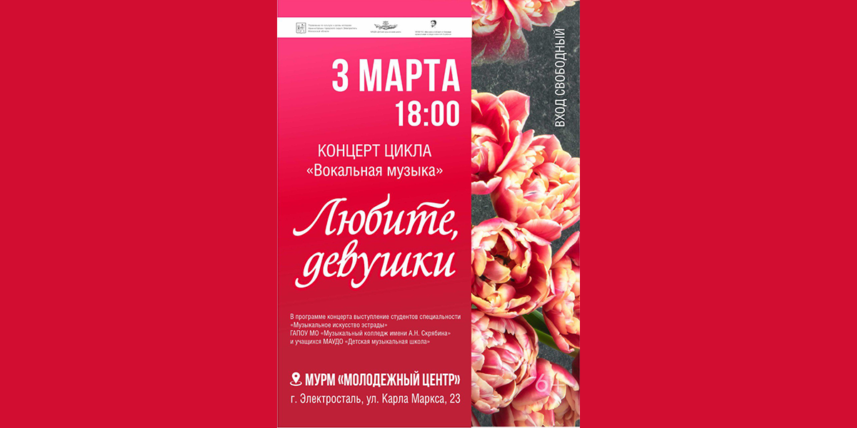 В преддверии Международного женского дня в Молодежном центре состоится концерт «Любите, девушки» в рамках музыкального цикла «Вокальная музыка».