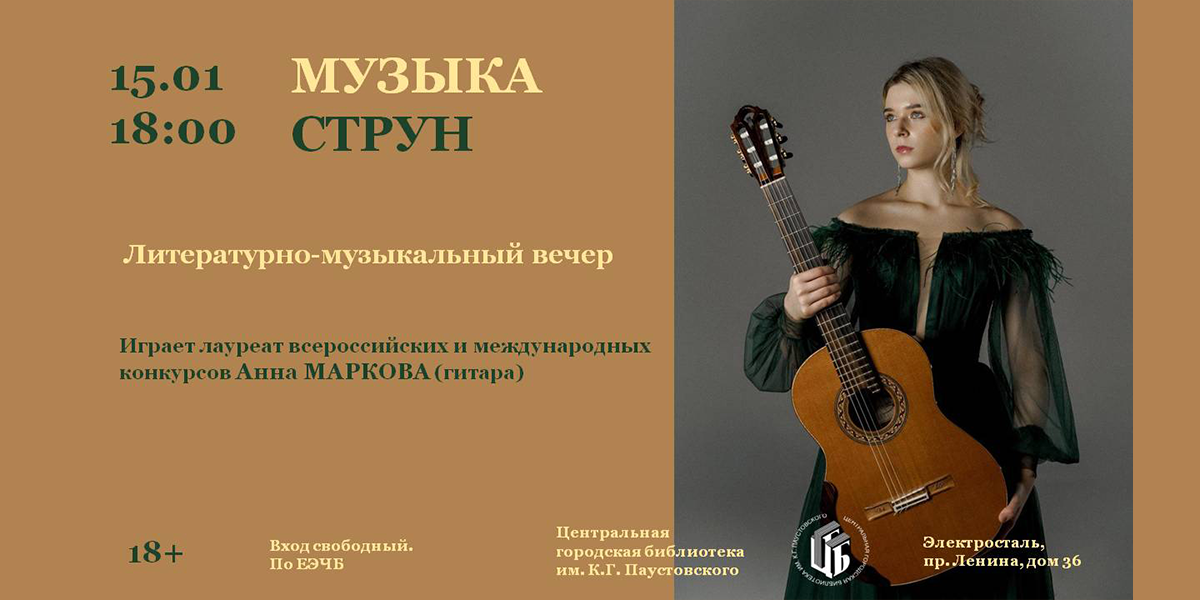 Центральная городская библиотека им. К.Г. Паустовского приглашает на литературно-музыкальный вечер «Музыка струн».