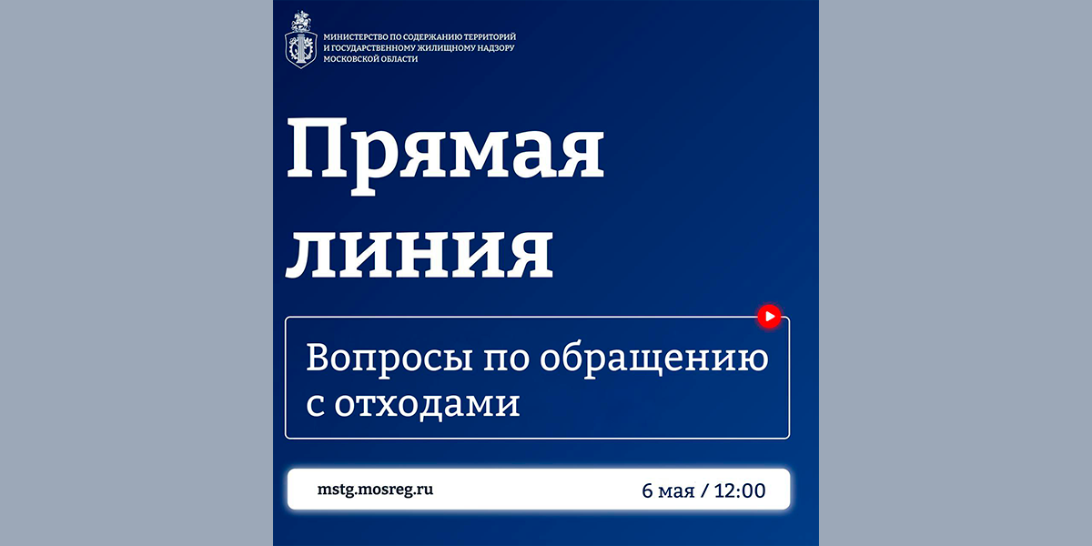 Министерство по содержанию территорий и государственному жилищному надзору Московской области приглашает на «Прямую линию» по вопросам обращения с твердыми коммунальными отходами и развития системы раздельного сбора.