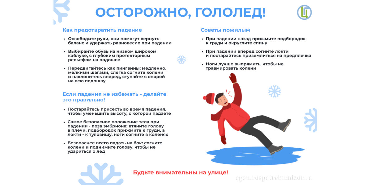 Ногинский территориальный отдел Управления Роспотребнадзора по Московской области напоминает, что подскальзывания и падения – одни из самых распространённых причин зимних травм. Будьте осторожны во время ходьбы в гололёд.