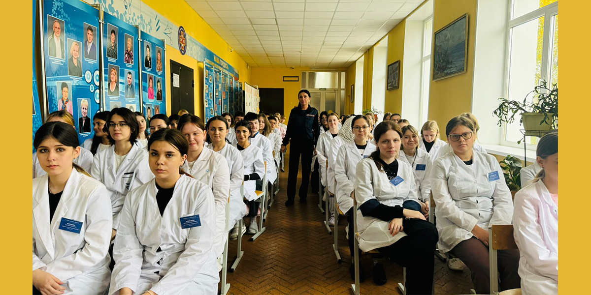 Профилактическую беседу «В дорожной безопасности – начни с себя!», провела инспектор по линии пропаганды БДД УМВД России по городскому округу Электросталь для студентов медицинского колледжа.