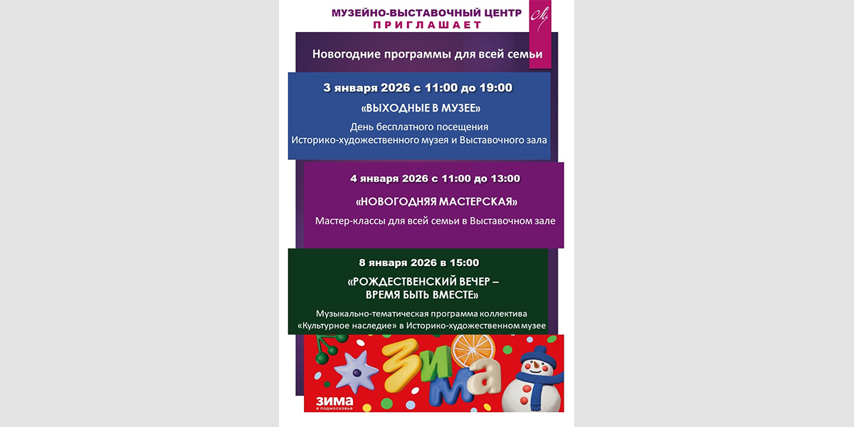 В новогодние праздники в Музейно-выставочном центре пройдут мероприятия для всей семьи.