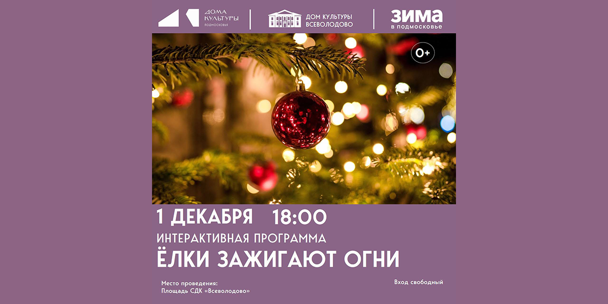 1 декабря на площади перед домом культуры «Всеволодово» состоится яркая интерактивная программа «Ёлки зажигают огни».
