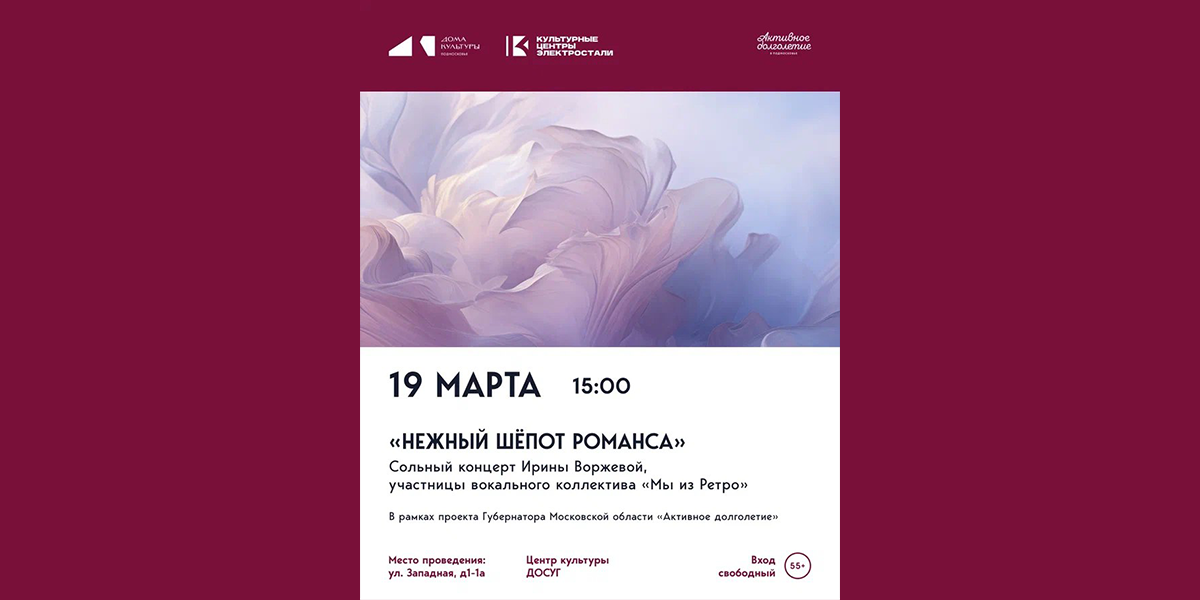 Центр культуры «Досуг» приглашает на сольный концерт участницы вокального коллектива «Мы из Ретро» Ирины Воржевой!