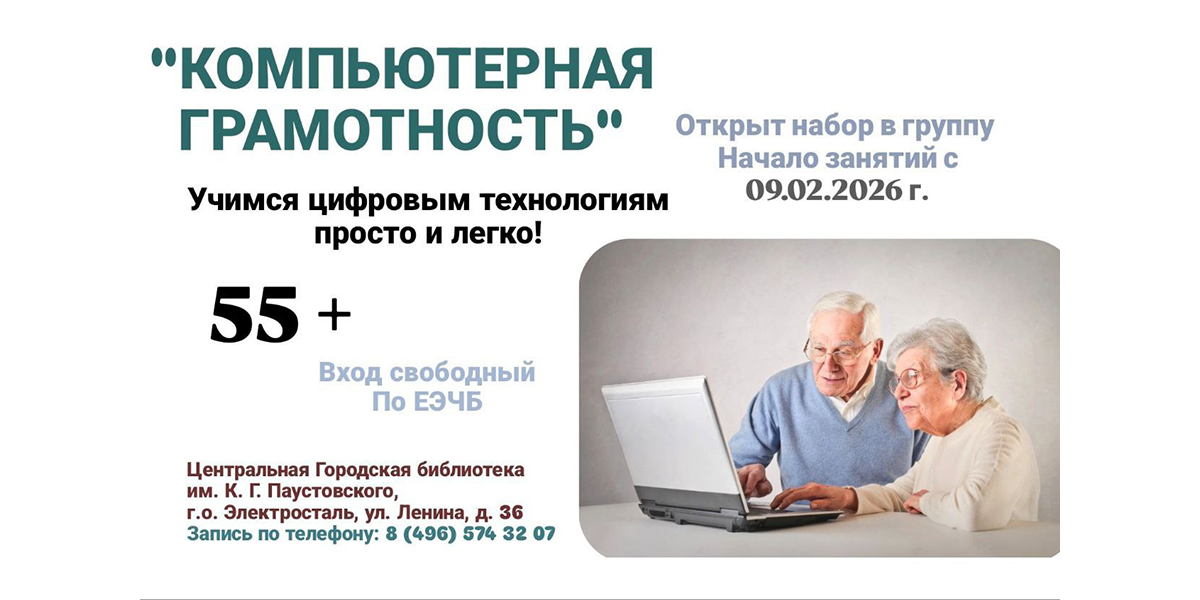 Студия компьютерной грамотности в Центральной городской библиотеке им. К.Г. Паустовского приглашает всех желающих освоить компьютер, современные технологии или улучшить свои навыки.