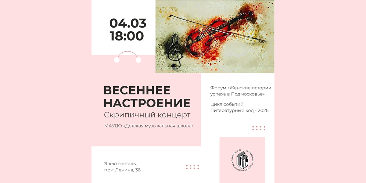 Центральная городская библиотека им. К.Г. Паустовского и Детская музыкальная школа» приглашают на вечер скрипичной музыки «ВЕСЕННЕЕ НАСТРОЕНИЕ»