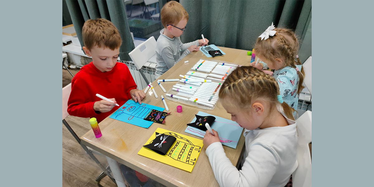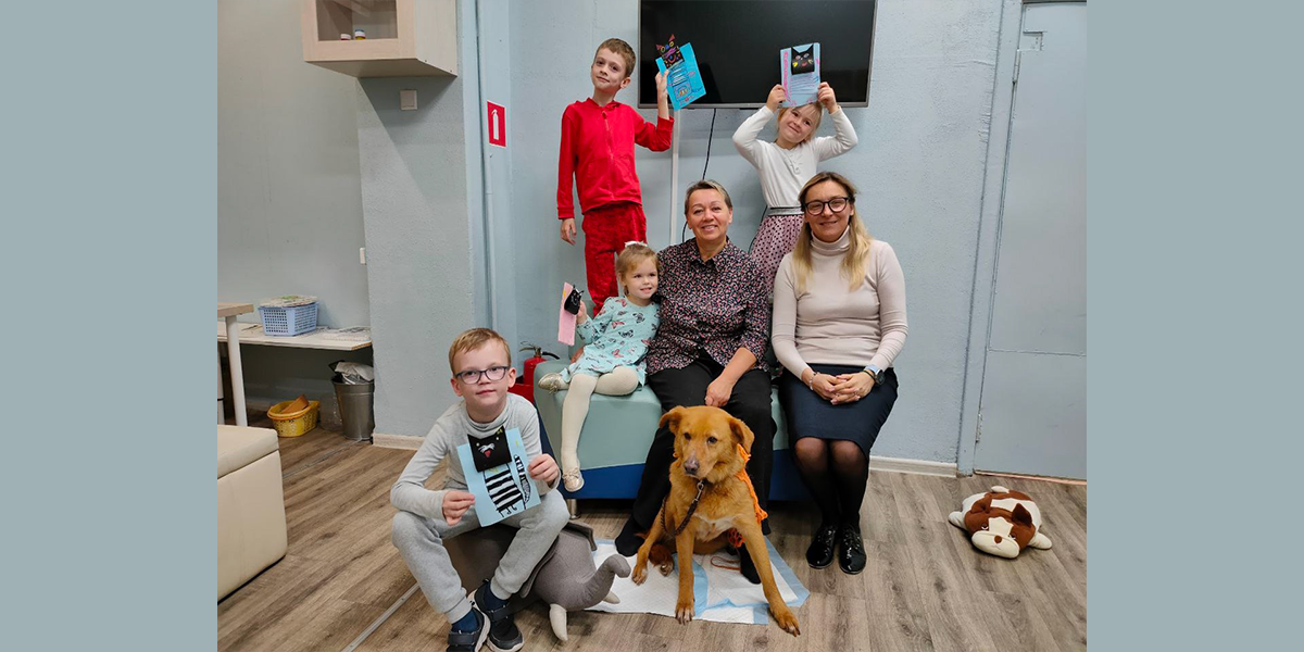 Ребята с удовольствием прочли отрывок из сказки Э.Успенского «Дядя Федор, пес и кот», поиграли в игры с цветами, отгадали животных и смастерили хитрого котика. Альма — собака волонтер посмотрела каждую работу и осталась ими довольна.