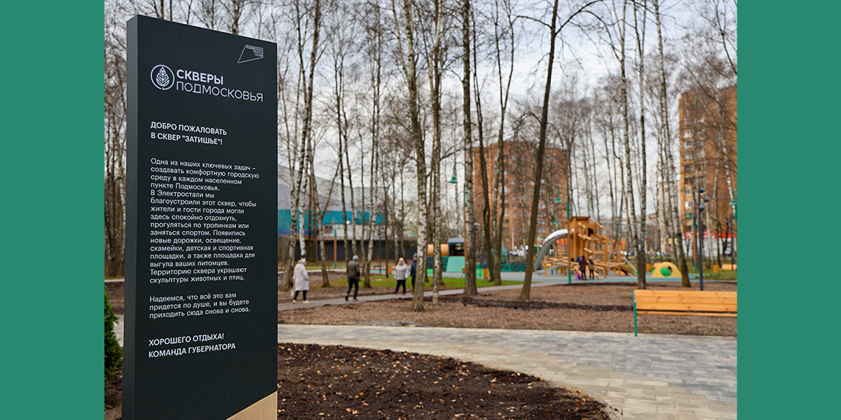 Сквер «Затишье» был благоустроен в рамках государственной программы Московской области «Формирование комфортной городской среды» благодаря поддержке губернатора Подмосковья Андрея Юрьевича Воробьёва.