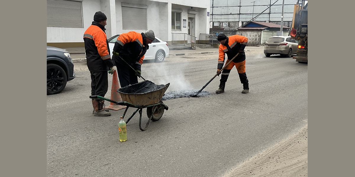 Для ямочного ремонта зимой используется литой асфальт. Работы по устранению повреждений продолжаются.