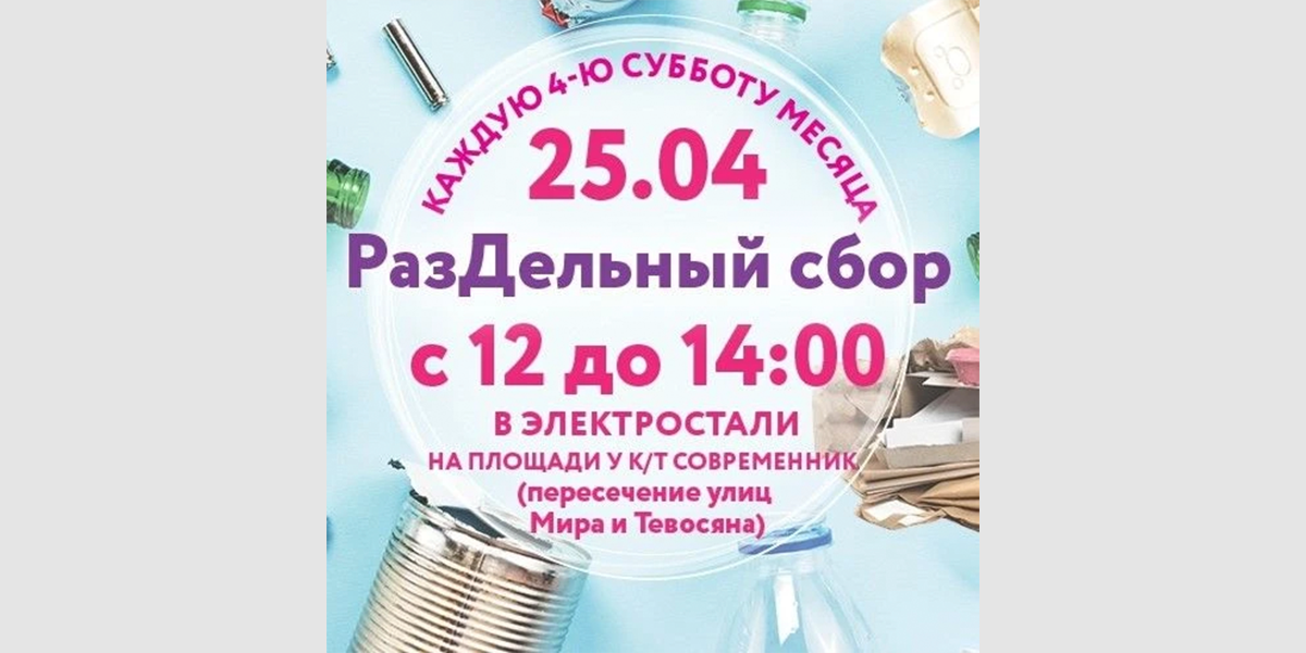 В субботу, 25 апреля, в Электростали состоится очередная акция по раздельному сбору отходов.