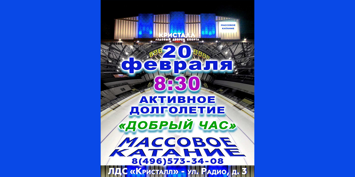 В ЛДС «Кристалл» и КТК имени Ионова А.С. пройдут массовые катания на льду, «Час хоккея» и «Добрый час» для участников проекта «Активное долголетие»