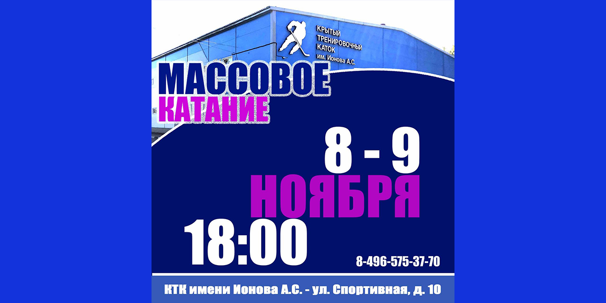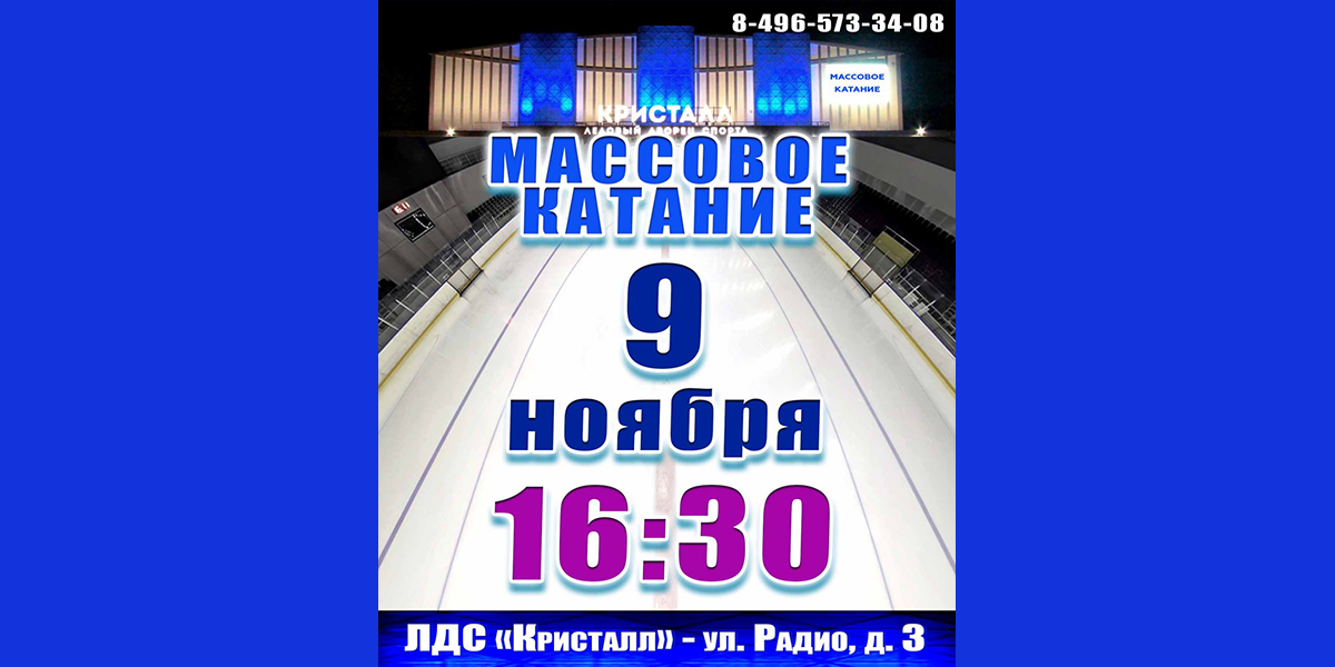 В ЛДС «Кристалл» и КТК имени Ионова А.С. пройдут массовые катания на льду и «Час хоккея»