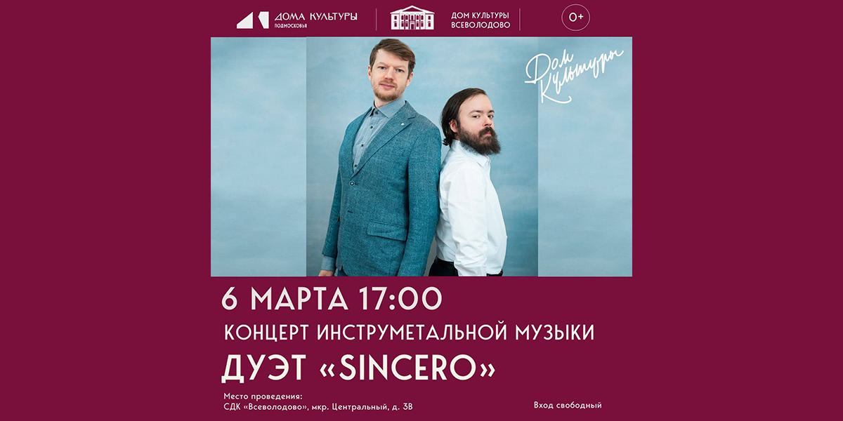 В преддверии Международного женского дня СДК «Всеволодово» приглашает на концерт дуэта «Sincero»