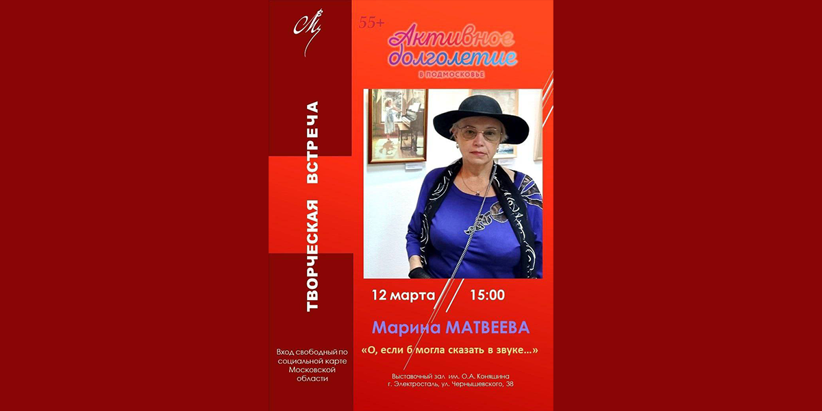 Марина Владимировна проведет экскурсию по своей выставке «О, если б могла сказать в звуке…», поделится творческими идеями и ответит на вопросы гостей.