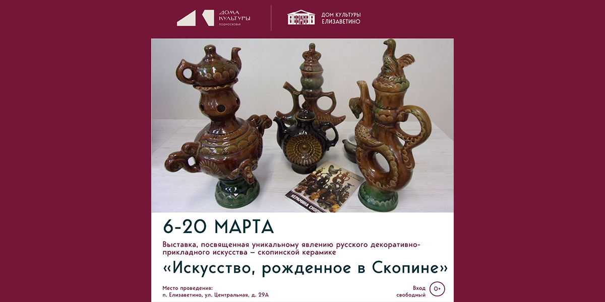 В СДК «Елизаветино» открывается экспозиция знаменитой скопинской керамики! Уникальный народный промысел Рязанской земли, известный своими сложными формами и глазурью, будет гостить у нас две недели.